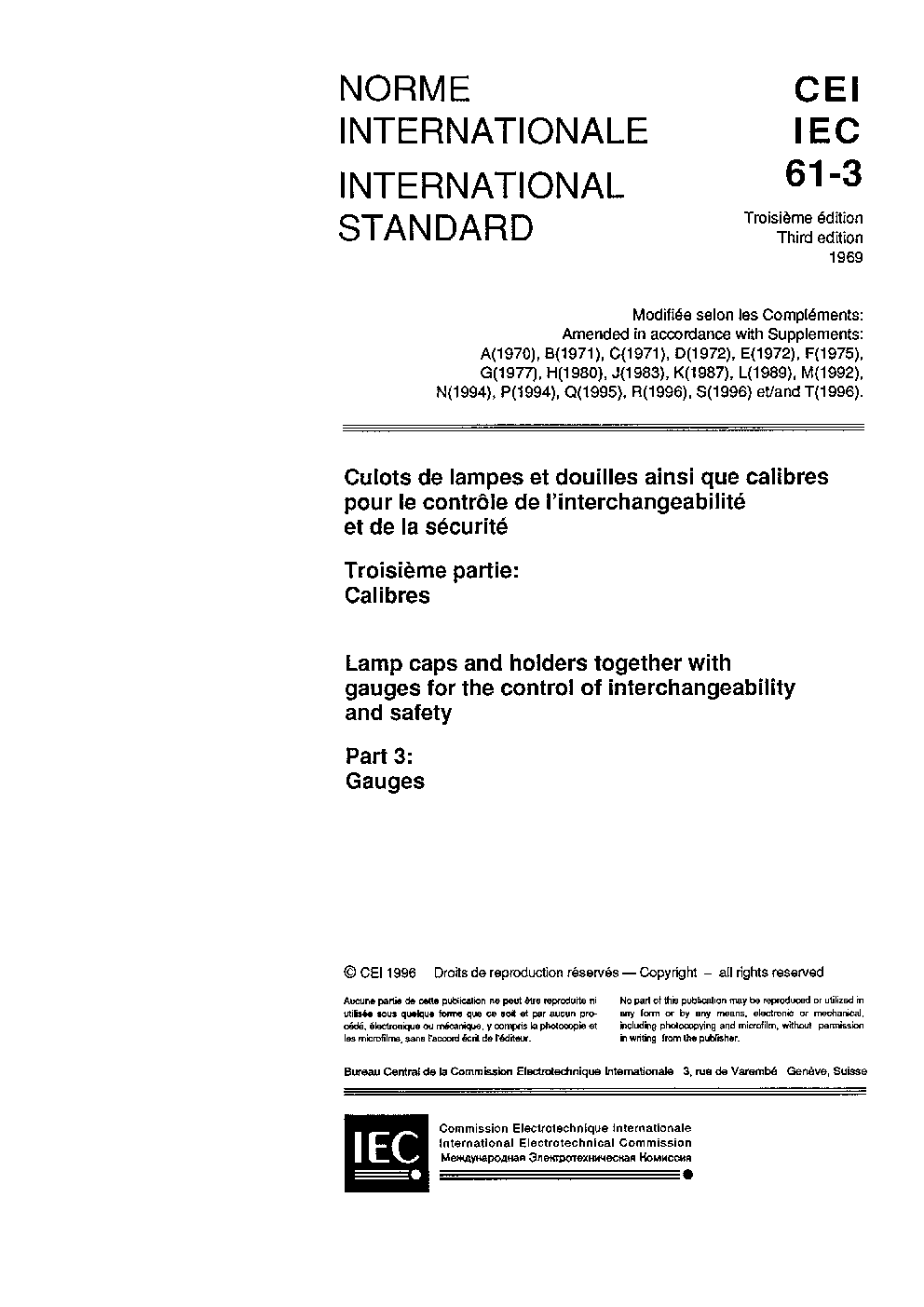 IEC 60061-3:1969/AMD27:2002 Amendment 27 - Lamp caps and holders together with gauges for the control of interchangeability and safety. Part 3: Gauges