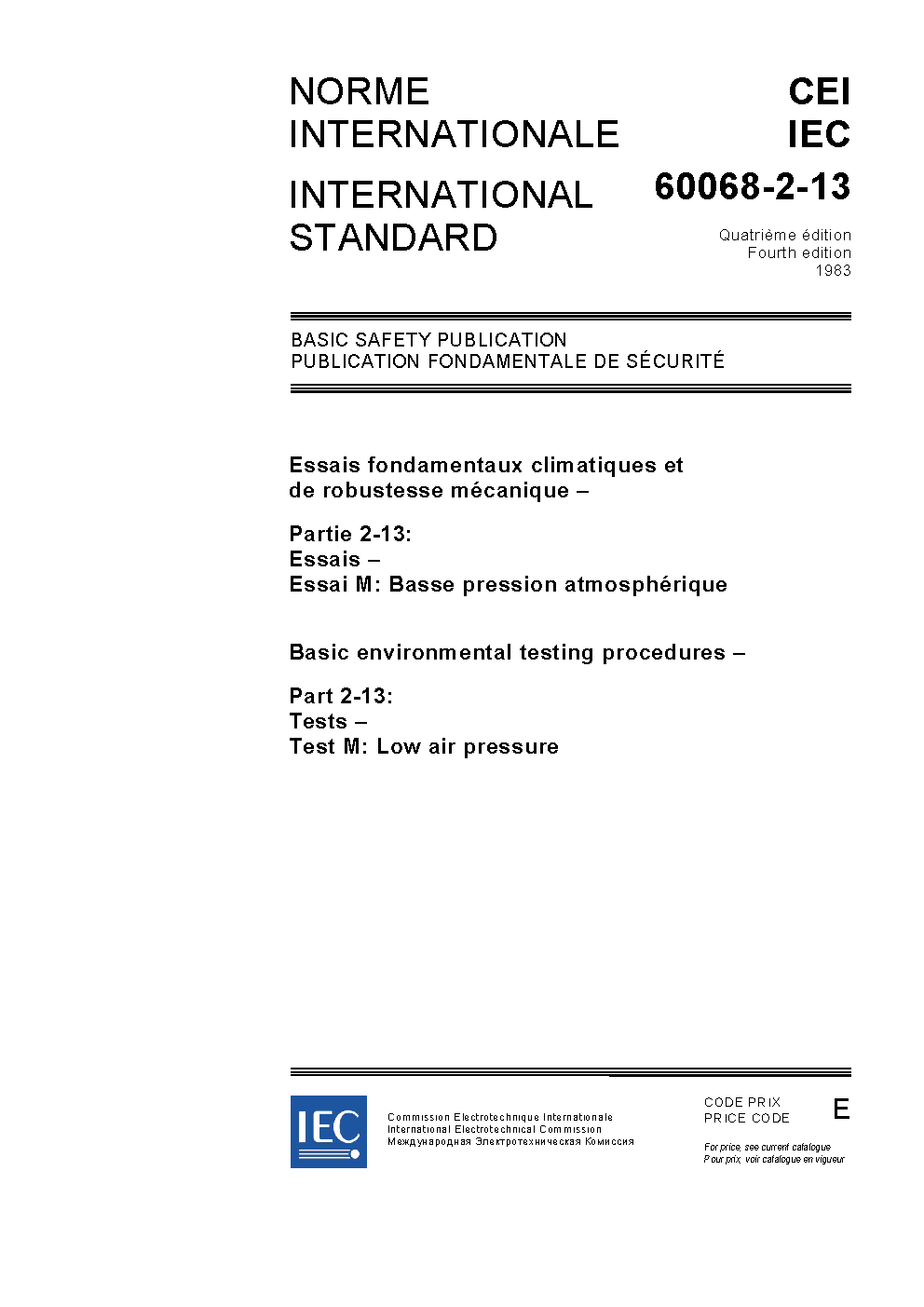 IEC 60068-2-13:1983 Basic environmental testing procedures - Part 2-13: Tests - Test M: Low air pressure