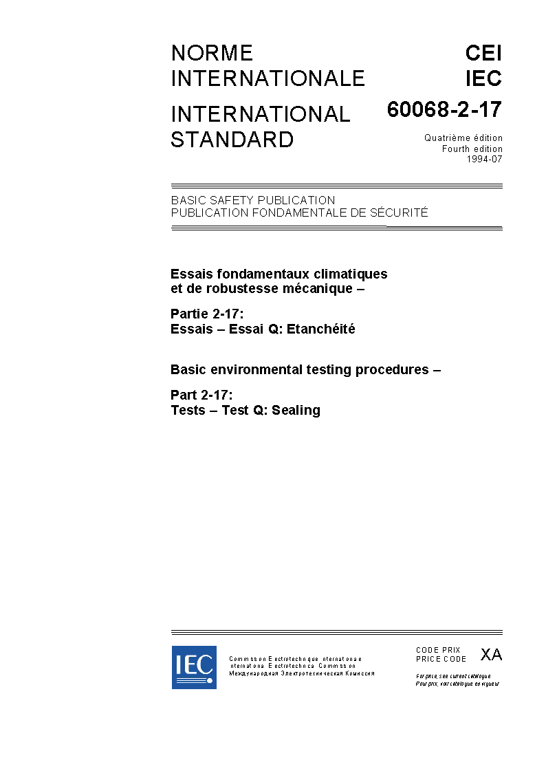 IEC 60068-2-17:2023 Environmental testing - Part 2-17: Tests - Test Q: Sealing