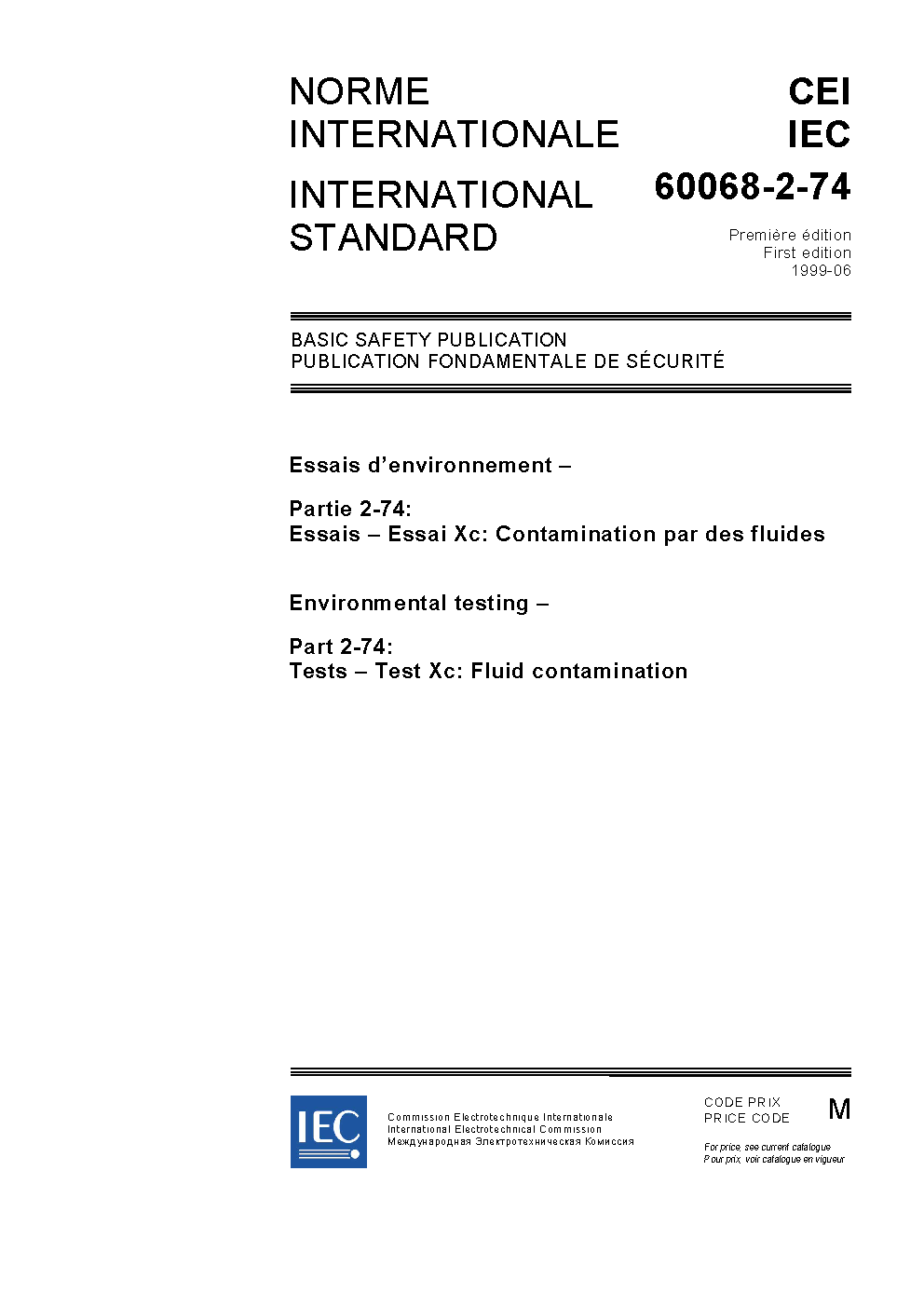 IEC 60068-2-74:1999 Environmental testing - Part 2: Tests - Test Xc: Fluid contamination