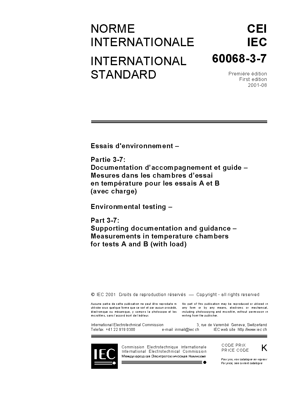 IEC 60068-3-7:2020 Environmental testing - Part 3-7: Supporting documentation and guidance - Measurements in temperature chambers for tests A (Cold) and B (Dry heat) (with load)
