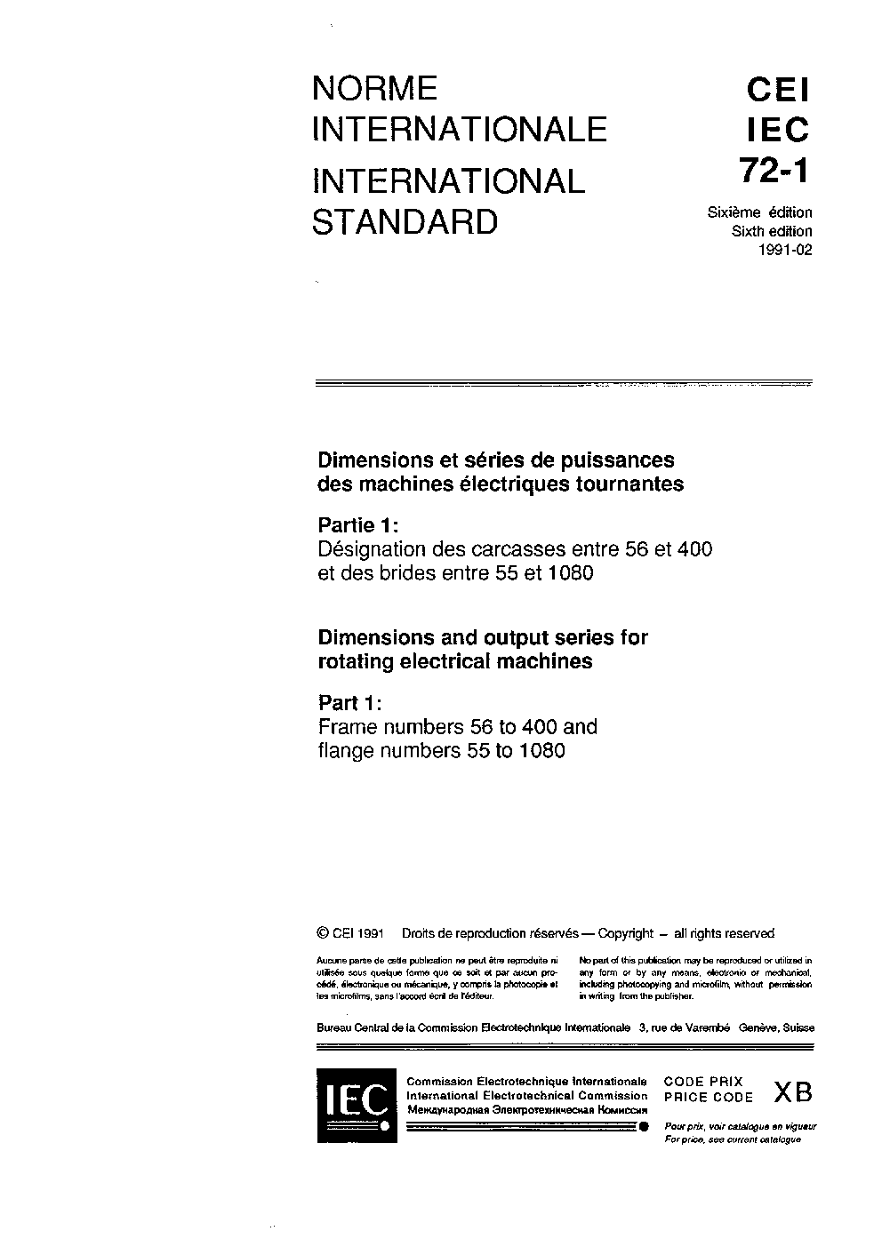 IEC 60072-1:2022 Rotating electrical machines - Dimensions and output series - Part 1: Frame numbers 56 to 400 and flange numbers 55 to 1080