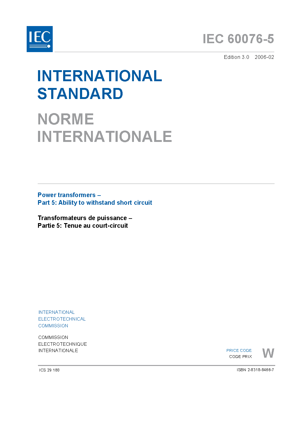IEC 60076-5:2006 Power transformers - Part 5: Ability to withstand short circuit