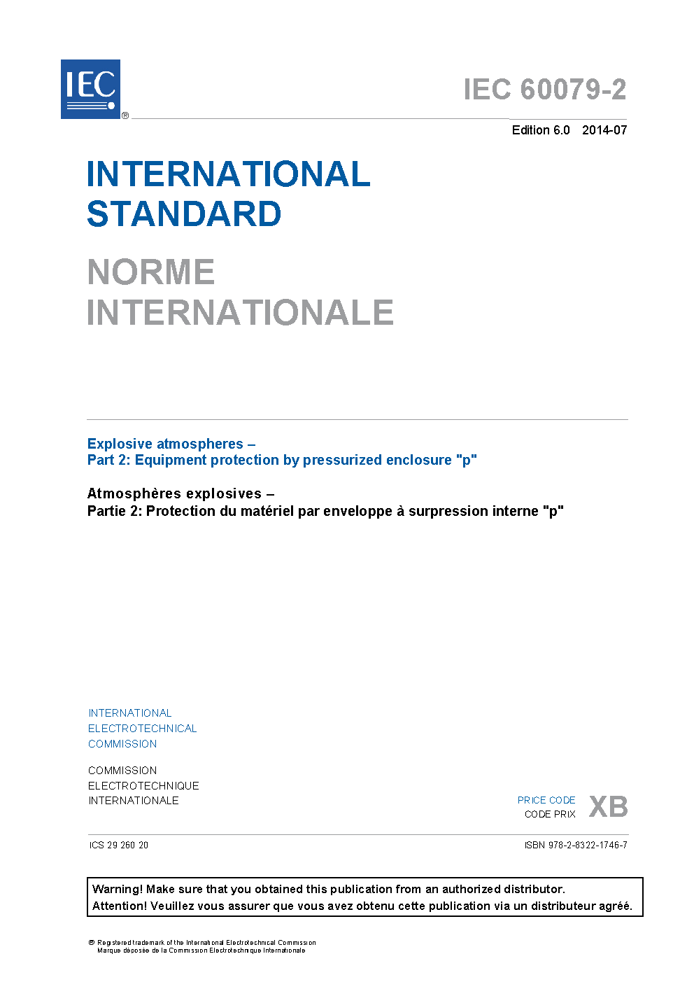IEC 60079-2:2014/COR1:2015 Corrigendum 1 - Explosive atmospheres - Part 2: Equipment protection by pressurized enclosure "p"