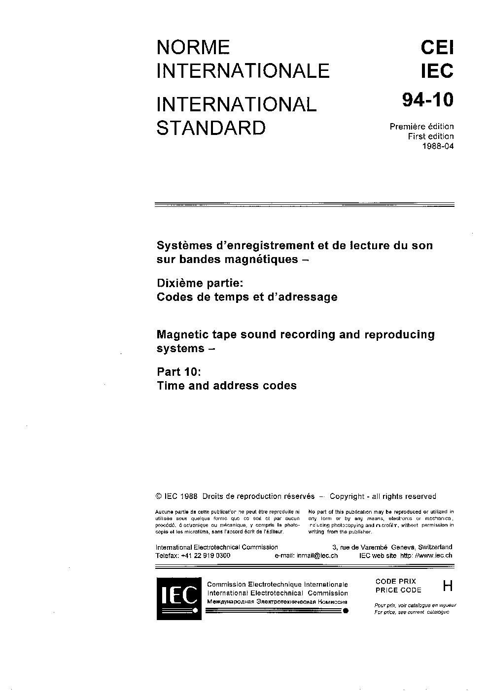 IEC 60094-10:1988 Magnetic tape sound recording and reproducing systems. Part 10: Time and address codes