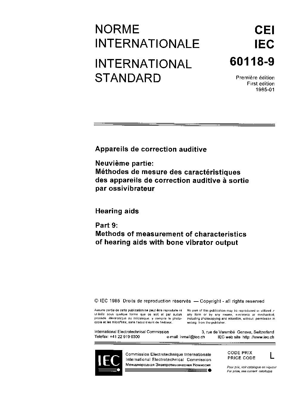 IEC 60118-9:1985 Hearing aids. Part 9: Methods of measurement of characteristics of hearing aids with bone vibrator output