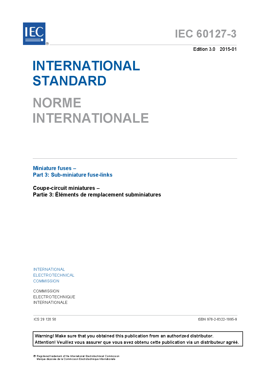 IEC 60127-3:1988 Miniature fuses - Part 3: Sub-miniature fuse-links