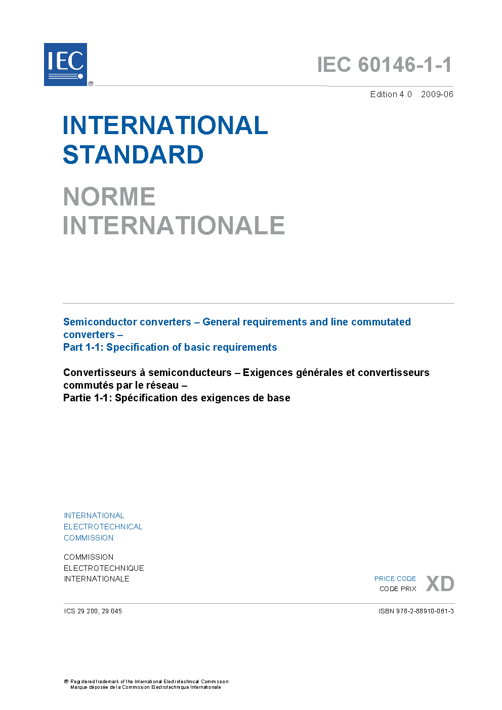 IEC 60146-1-1:2009 Semiconductor converters - General requirements and line commutated converters - Part 1-1: Specification of basic requirements