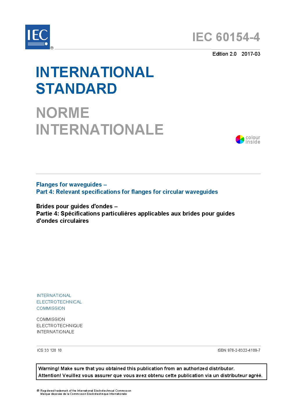 IEC 60154-4:2017 specifies the dimensions of flanges for circular waveguides for use in electronic equipment.