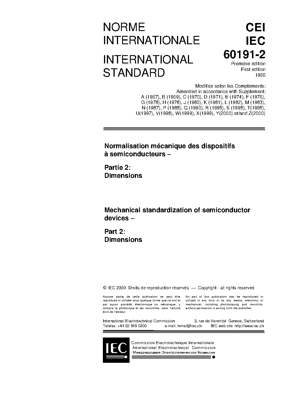 Contains more than 220 standard sheets covering device outline drawings and the types of semiconductor devices generally mounted in the packages. Published in the IEC since 1966, the drawings given in this publication represent the unification of national standards. The database version of this publication avails the standard sheets in PDF format and it also provides search facilities for easy retrieval of the drawings.