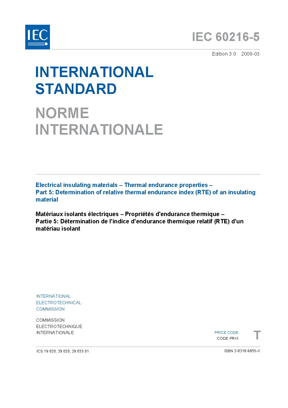 IEC 60216-5:2008 Electrical insulating materials - Thermal endurance properties - Part 5: Determination of relative thermal endurance index (RTE) of an insulating material