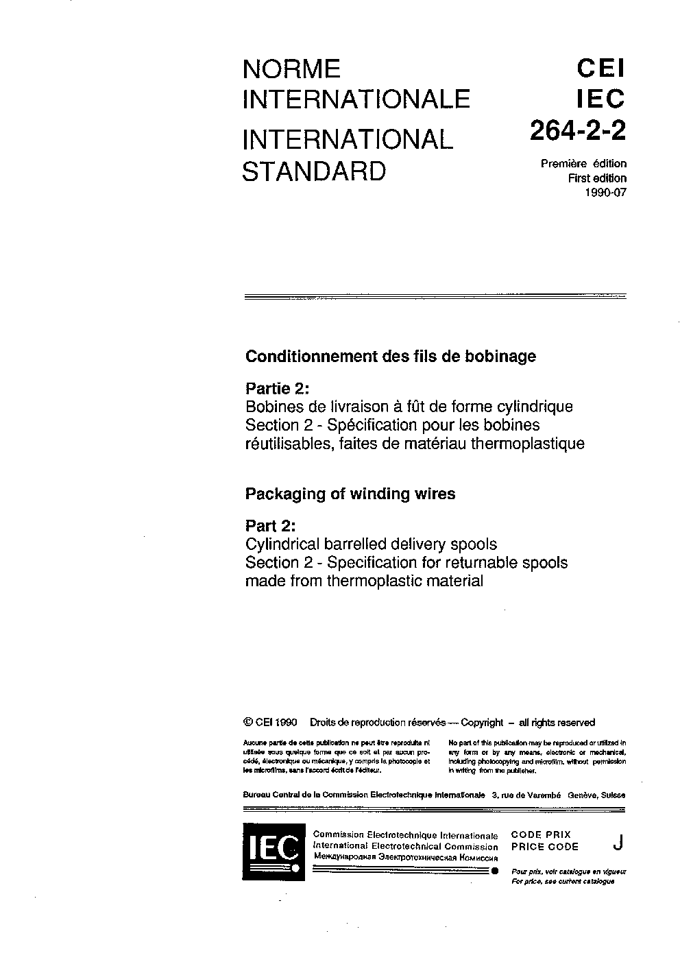 IEC 60264-2-2:1990 Packaging of winding wires. Part 2: Cylindrical barrelled delivery spools. Section Two: Specification for returnable spools made from thermoplastic material