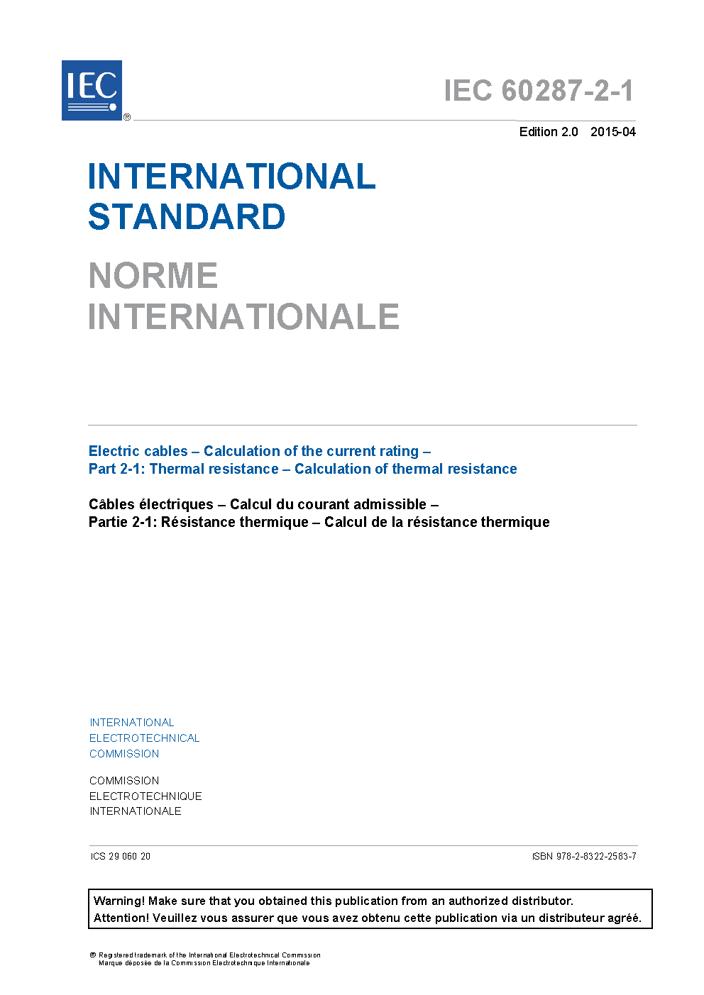 IEC 60287-2-1:2015 Electric cables - Calculation of the current rating - Part 2-1: Thermal resistance - Calculation of the thermal resistance