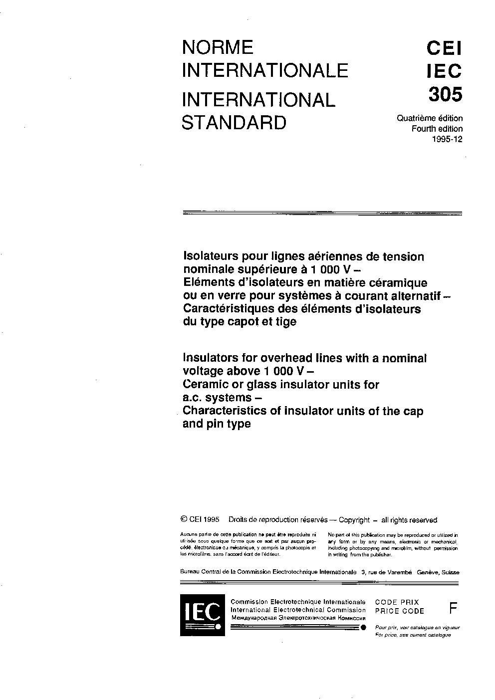 IEC 60305:1995 Insulators for overhead lines with a nominal voltage above 1000 V - Ceramic or glass insulator units for a.c. systems - Characteristics of insulator units of the cap and pin type