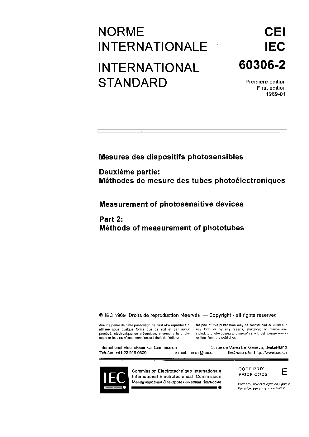 IEC 60306-2:1969 Measurement of photosensitive devices. Part 2: Methods of measurement of phototubes