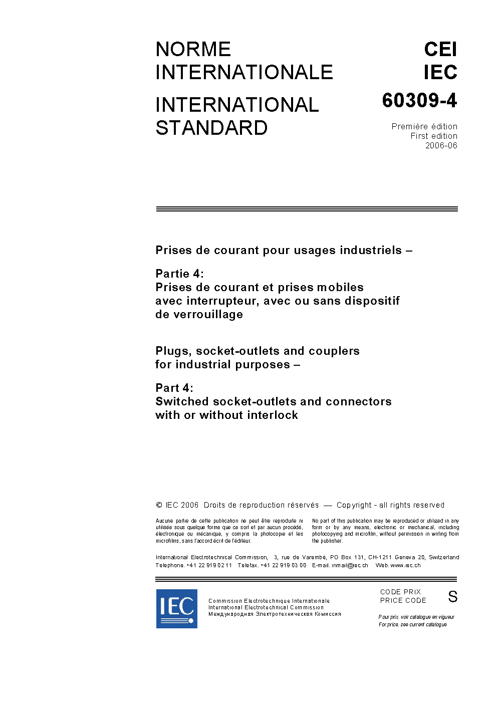 IEC 60309-4:2006 Plugs, socket-outlets and couplers for industrial purposes - Part 4: Switched socket-outlets and connectors with or without interlock