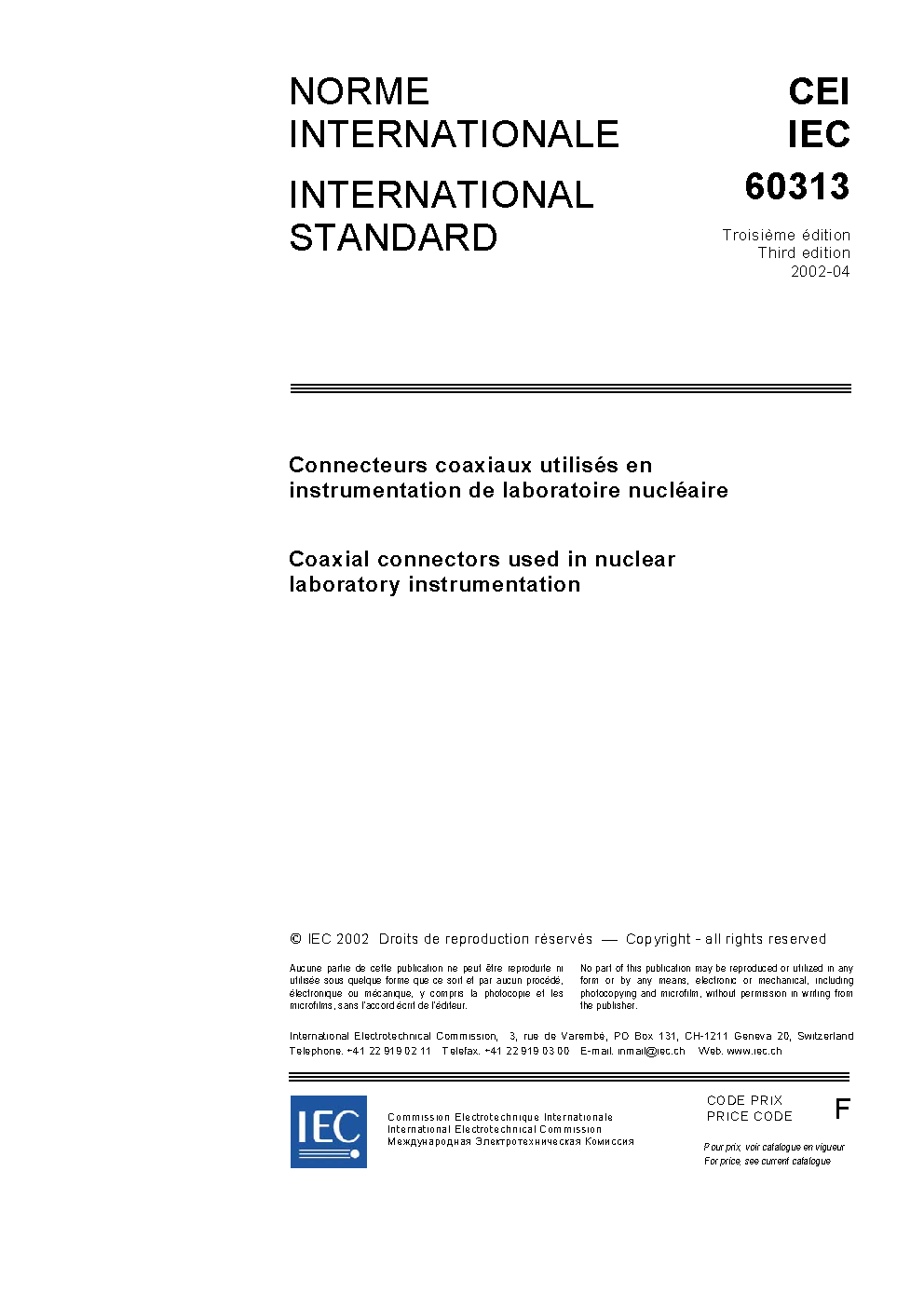 IEC 60313:2002 Coaxial connectors used in nuclear laboratory instrumentation