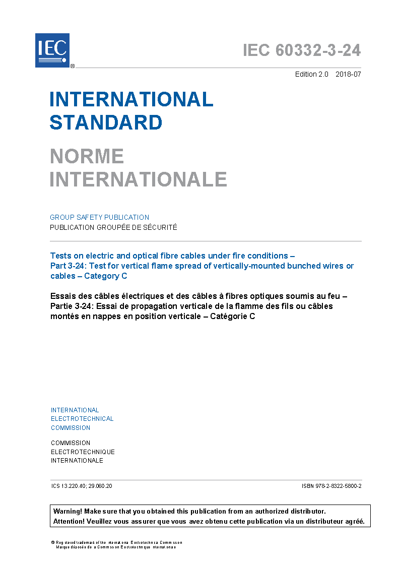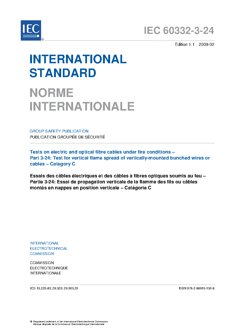 IEC 60332-3-24:2018/ISH1:2019 Interpretation sheet 1 - Tests on electric and optical fibre cables under fire conditions - Part 3-24: Test for vertical flame spread of vertically-mounted bunched wires or cables - Category C