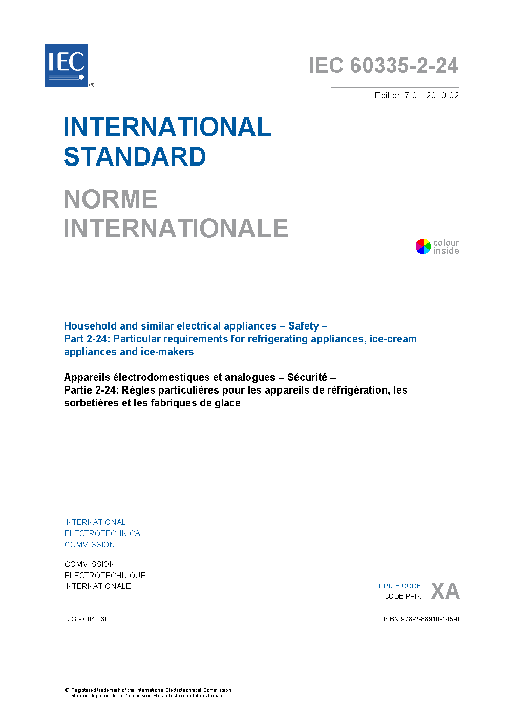 IEC 60335-2-24:2025 deals with the safety of the following appliances, their rated voltage being not more than 250 V for single-phase appliances, 480 V for other appliances and 24 V DC for appliances when battery-operated: