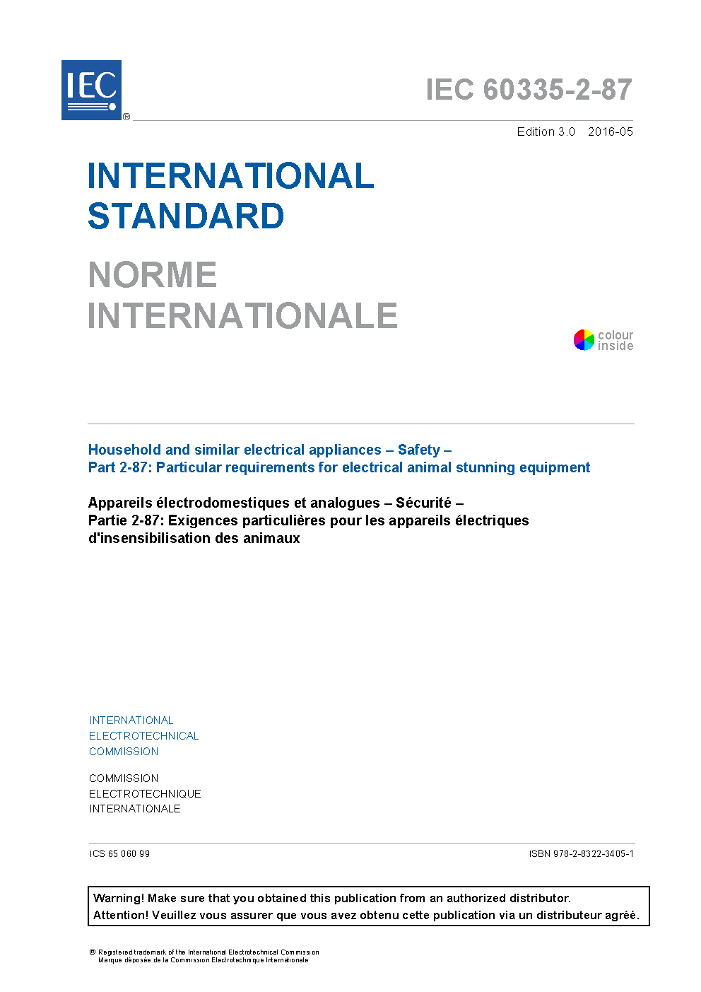 IEC 60335-2-87:2016 Household and similar electrical appliances - Safety - Part 2-87: Particular requirements for electrical animal stunning equipment