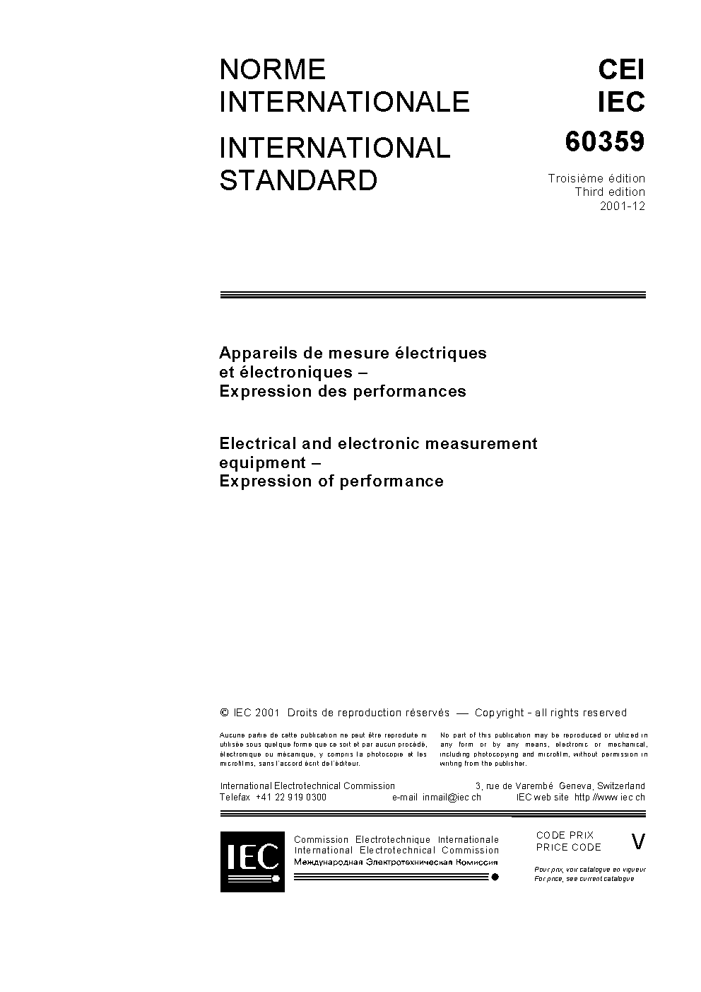 IEC 60359:2001 Electrical and electronic measurement equipment - Expression of performance