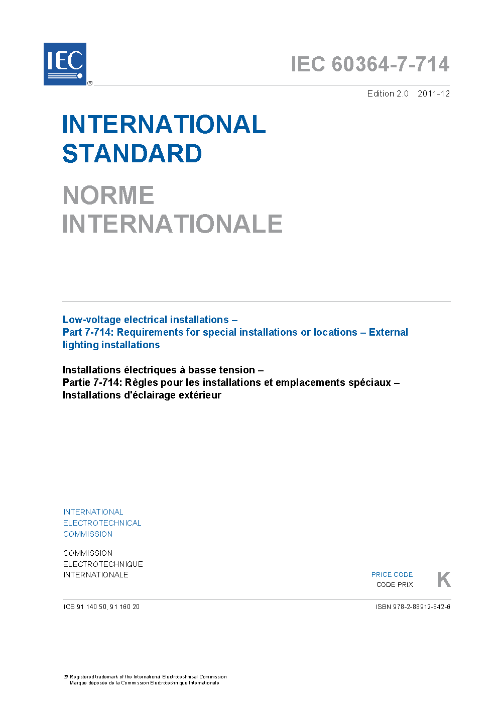 IEC 60364-7-714:2011 Low-voltage electrical installations - Part 7-714: Requirements for special installations or locations - External lighting installations