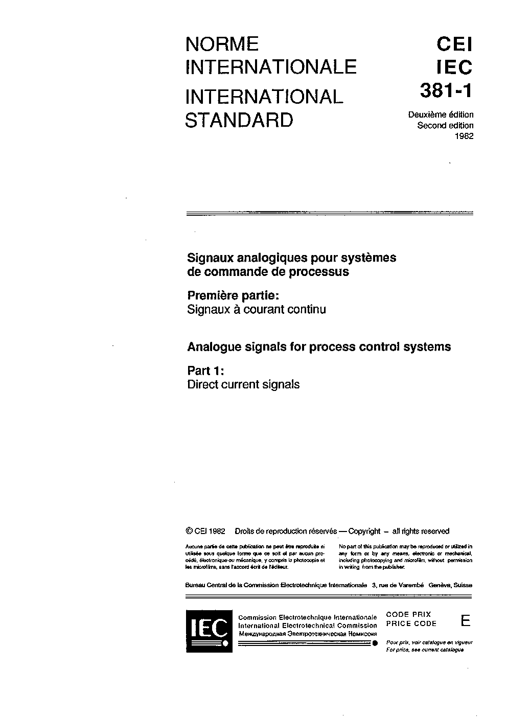 IEC 60381-1:1982 Analogue signals for process control systems. Part 1: Direct current signals