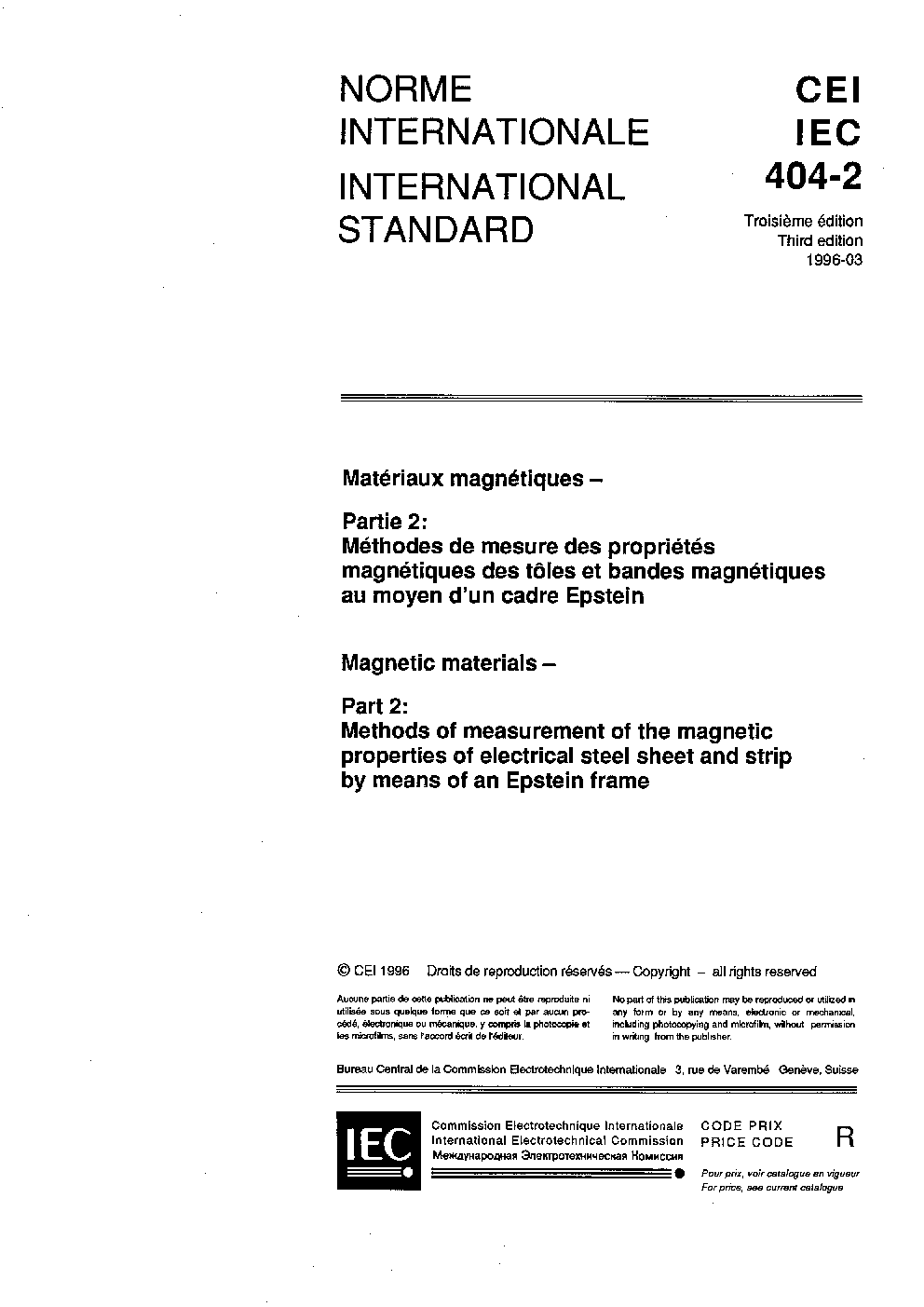 IEC 60404-2:1996/AMD1:2008 Amendment 1 - Magnetic materials - Part 2: Methods of measurement of magnetic properties of electrical steel strip and sheet by means of an Epstein frame