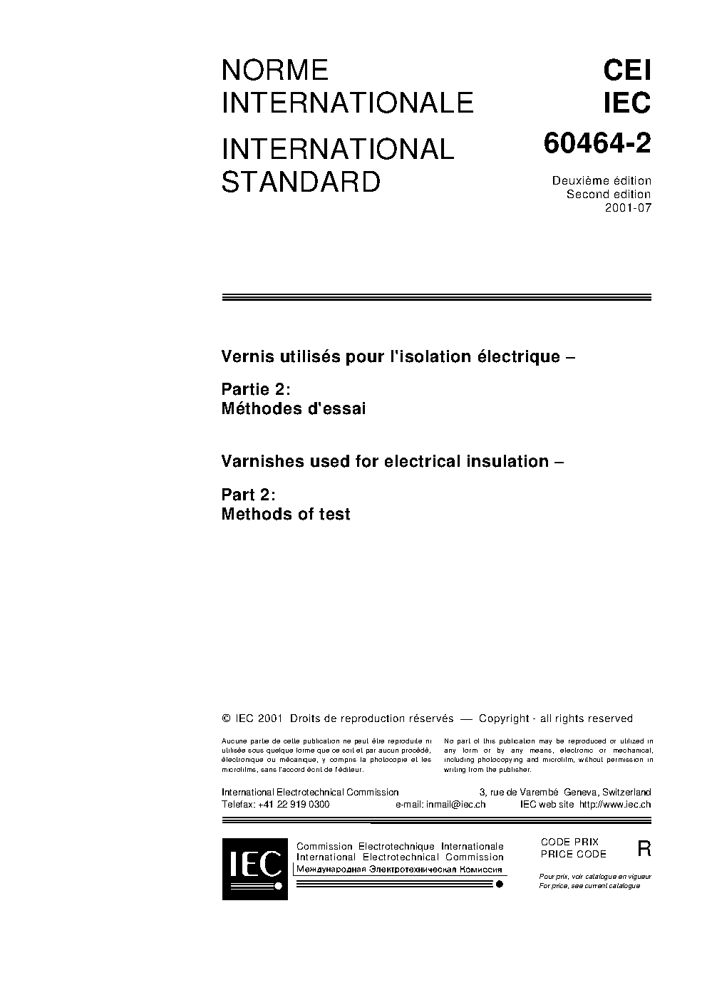 IEC 60464-2:2001/AMD1:2006 Amendment 1 - Varnishes used for electrical insulation - Part 2: Methods of test
