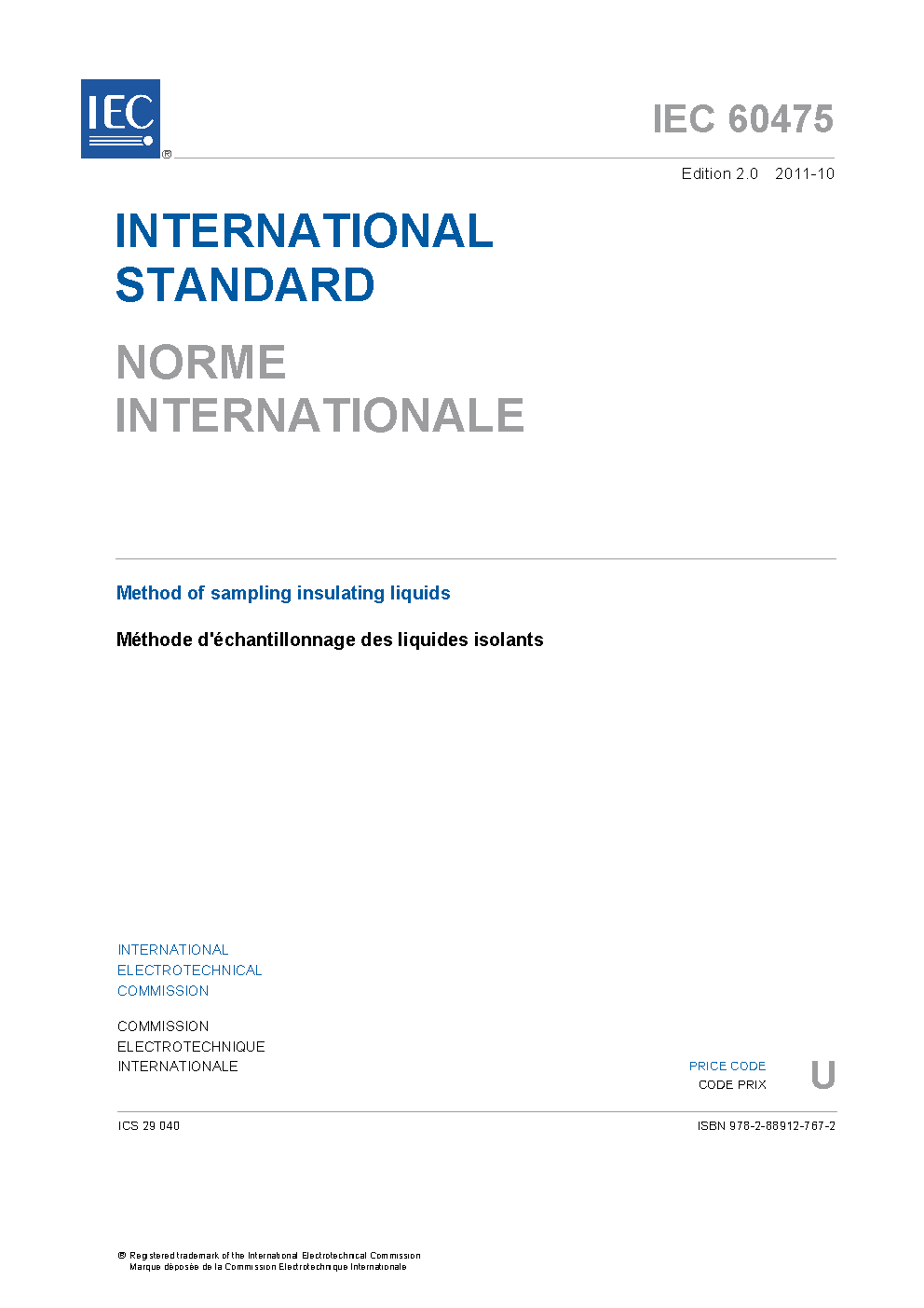 IEC 60475:2022 is applicable to the sampling procedure used for insulating liquids in delivery containers and in electrical equipment such as power and instrument transformers, reactors, bushings, oil-filled cables, oil-filled tank-type capacitors, switchgear and load tap changers (LTCs). This document applies to liquids the viscosity of which at the sampling temperature is less than 1 500 mm2/s (or cSt). It applies to mineral oils and non-mineral oils (such as synthetic esters, natural esters, vegetable oils or silicones).