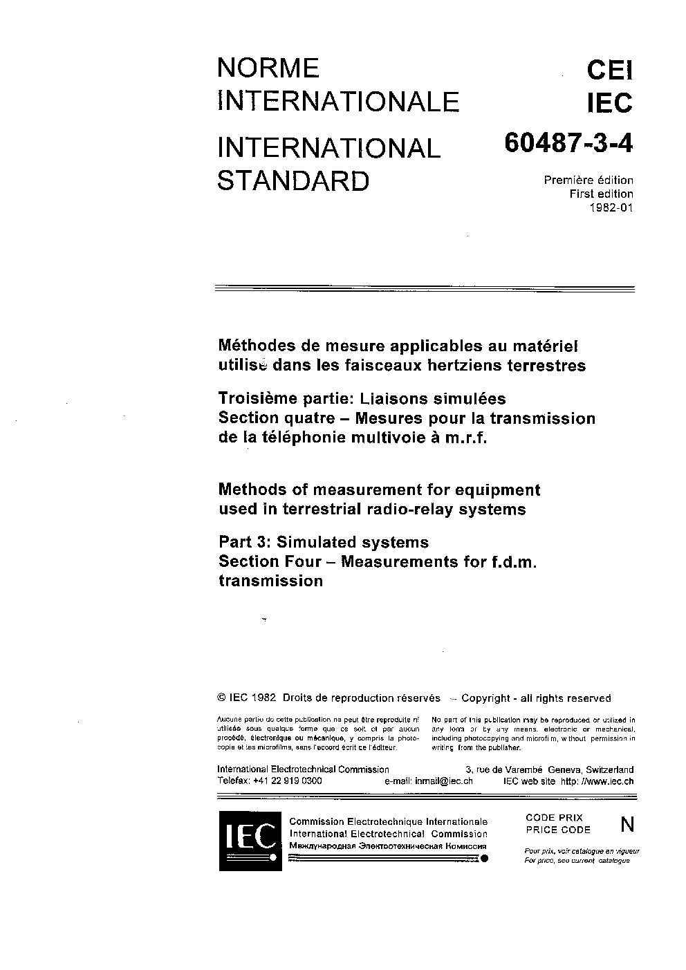 IEC 60487-3-4:1982 Methods of measurement for equipment used in terrestrial radio-relay systems - Part 3: Simulated systems - Section Four: Measurements for f.d.m. transmission