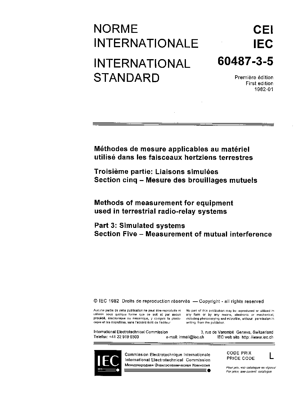 IEC 60487-3-5:1982 Methods of measurement for equipment used in terrestrial radio-relay systems - Part 3: Simulated systems - Section Five: Measurement of mutual interference