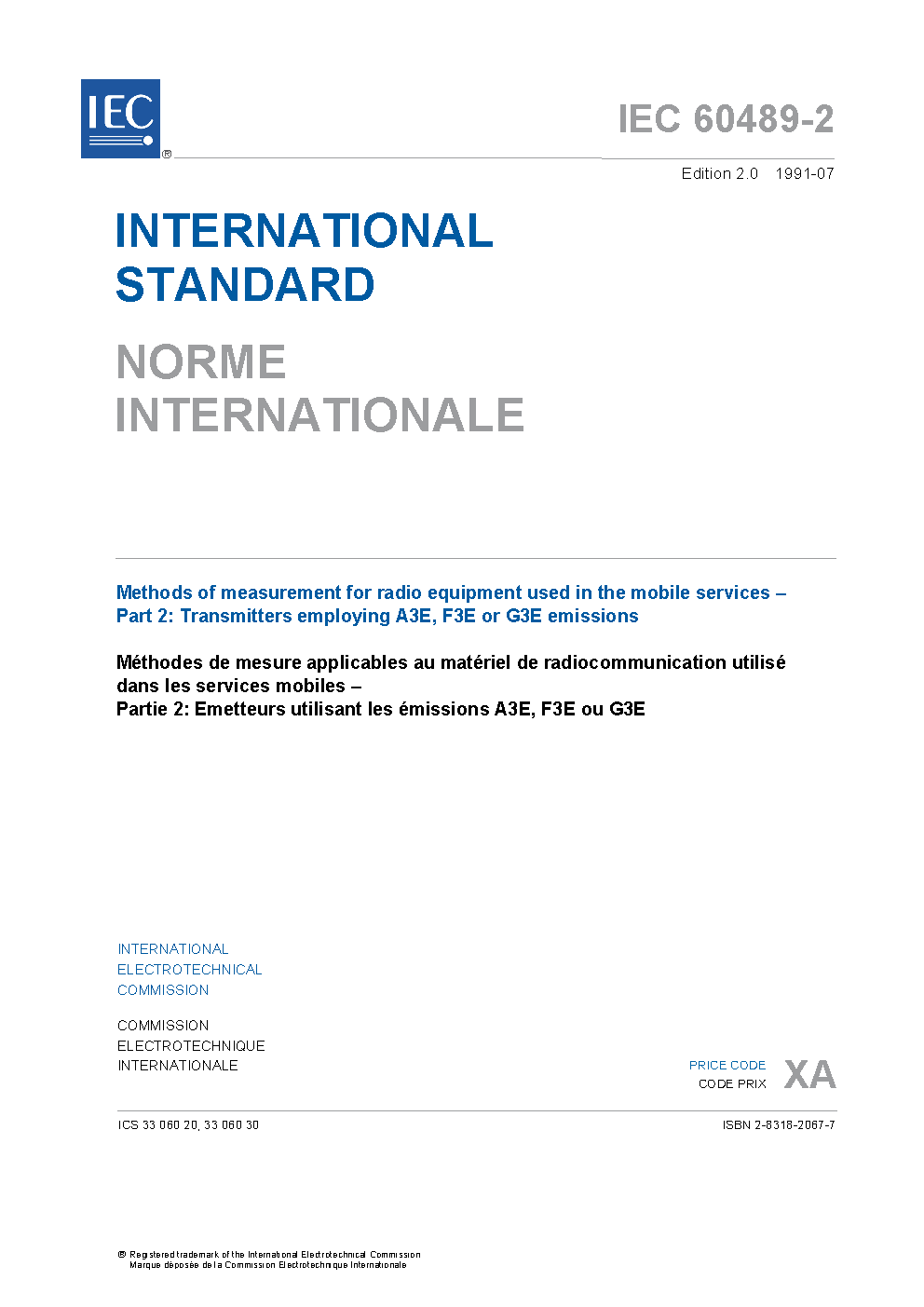 IEC 60489-2:1991/AMD1:1999 Amendment 1 - Methods of measurement for radio equipment used in the mobile services - Part 2: Transmitters employing A3E, F3E or G3E emissions