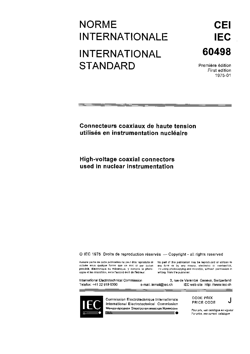 IEC 60498:1975 High-voltage coaxial connectors used in nuclear instrumentation