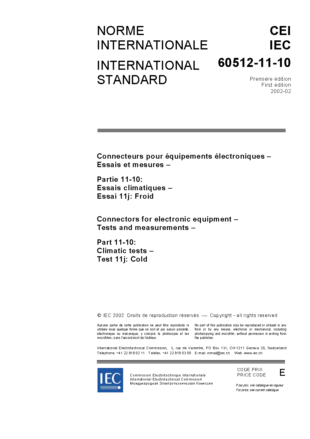 IEC 60512-11-10:2002 Connectors for electronic equipment - Tests and measurements - Part 11-10: Climatic tests - Test 11j: Cold