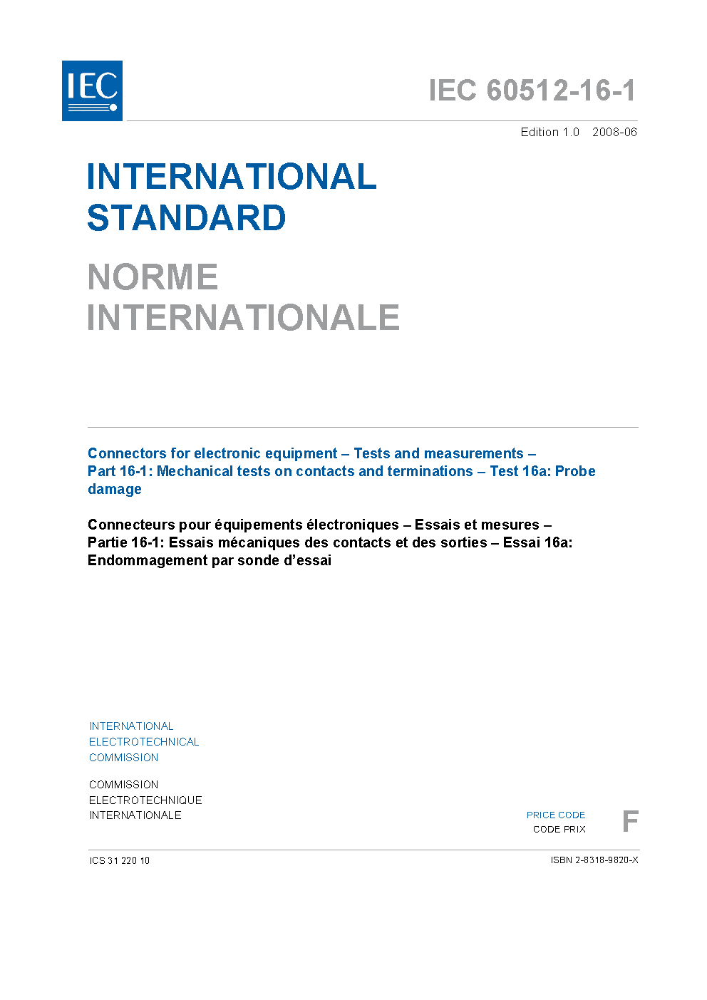 IEC 60512-16-1:2008 details a standard test method to assess the effectiveness of the elastic system of contacts to resist damage from the insertion of a specified test probe.