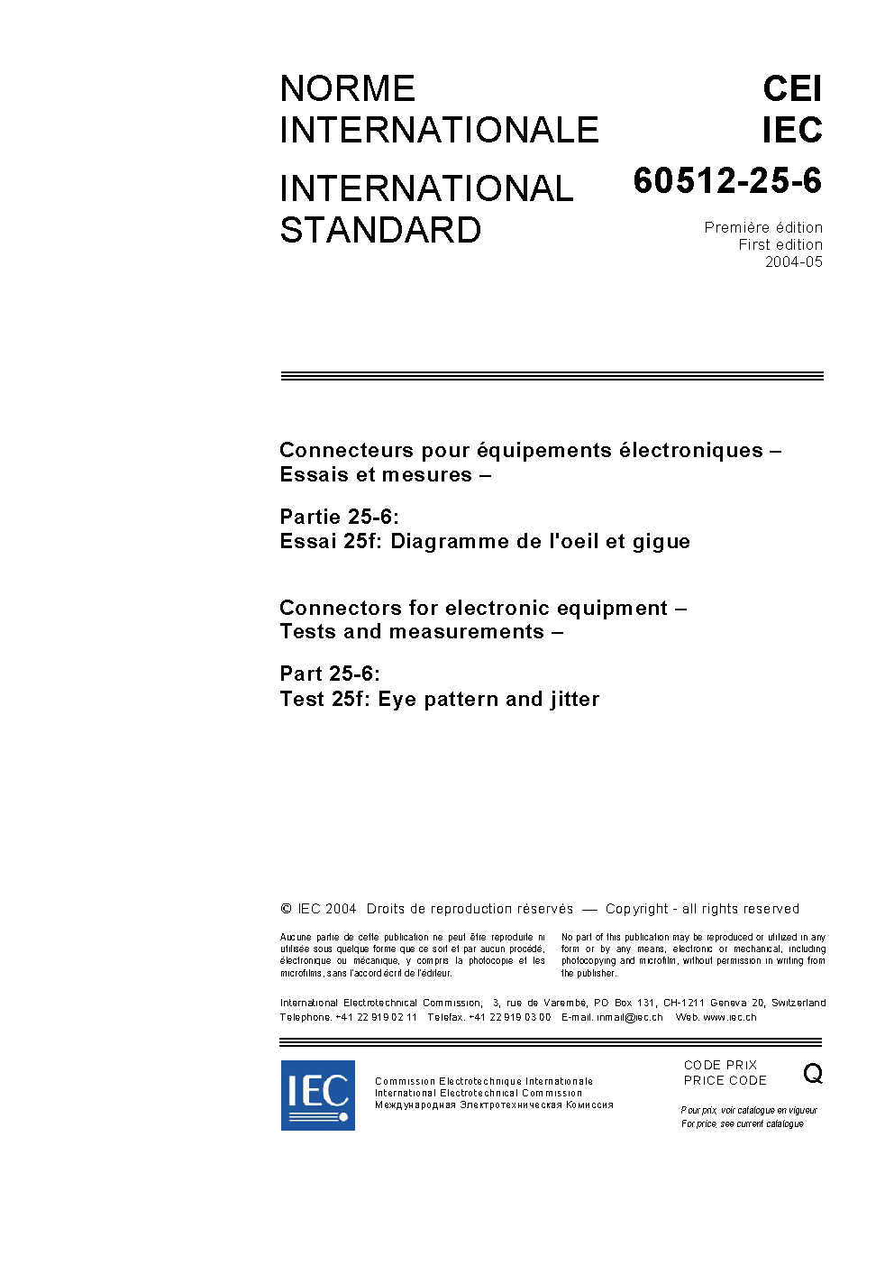 IEC 60512-25-6:2004 Connectors for electronic equipment - Tests and measurements - Part 25-6: Test 25f: Eye pattern and jitter