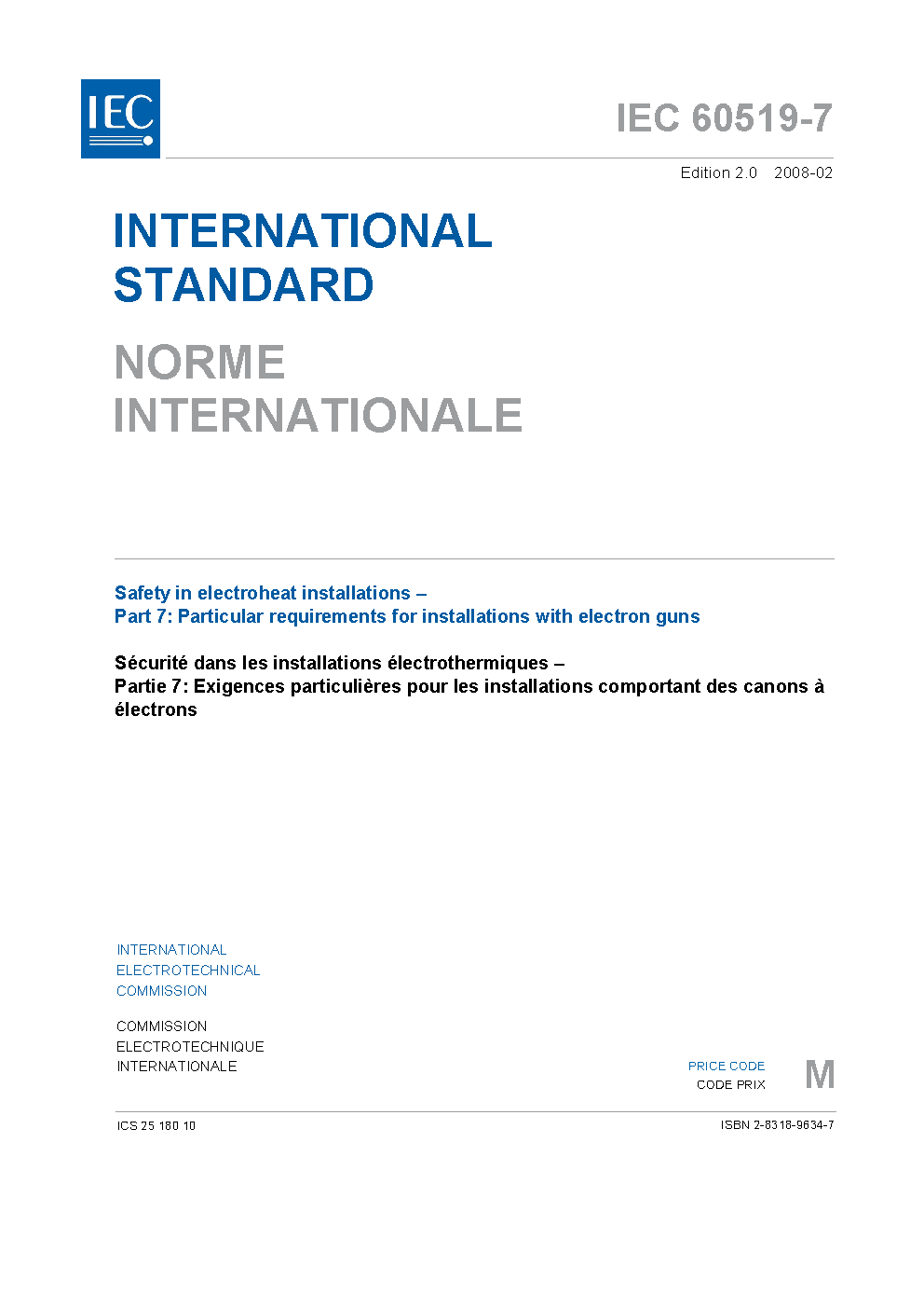 IEC 60519-7:2008 Safety in electroheat installations - Part 7: Particular requirements for installations with electron guns