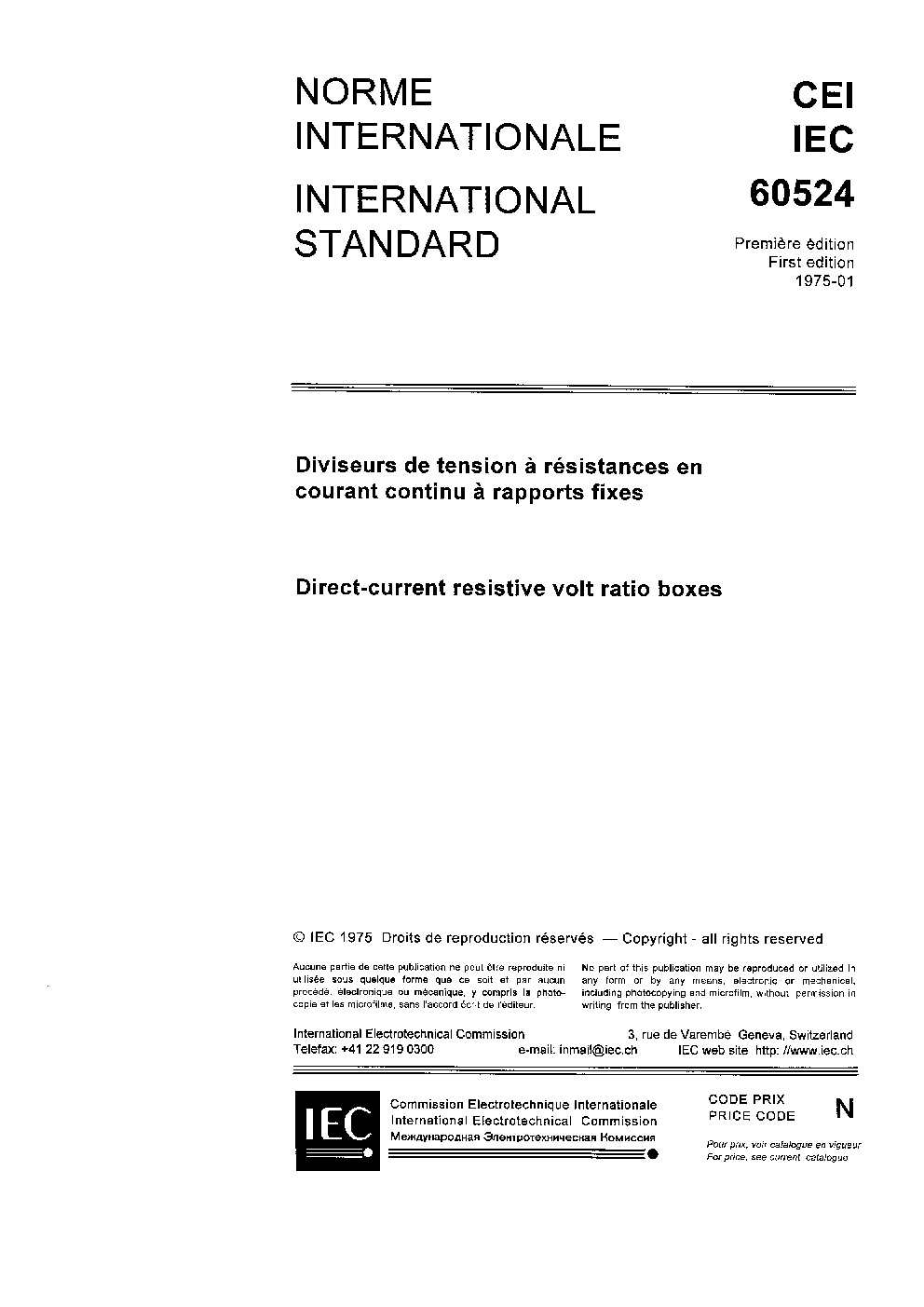 IEC 60524:1975 Diviseurs de tension à résistances en courant continu à rapports fixes