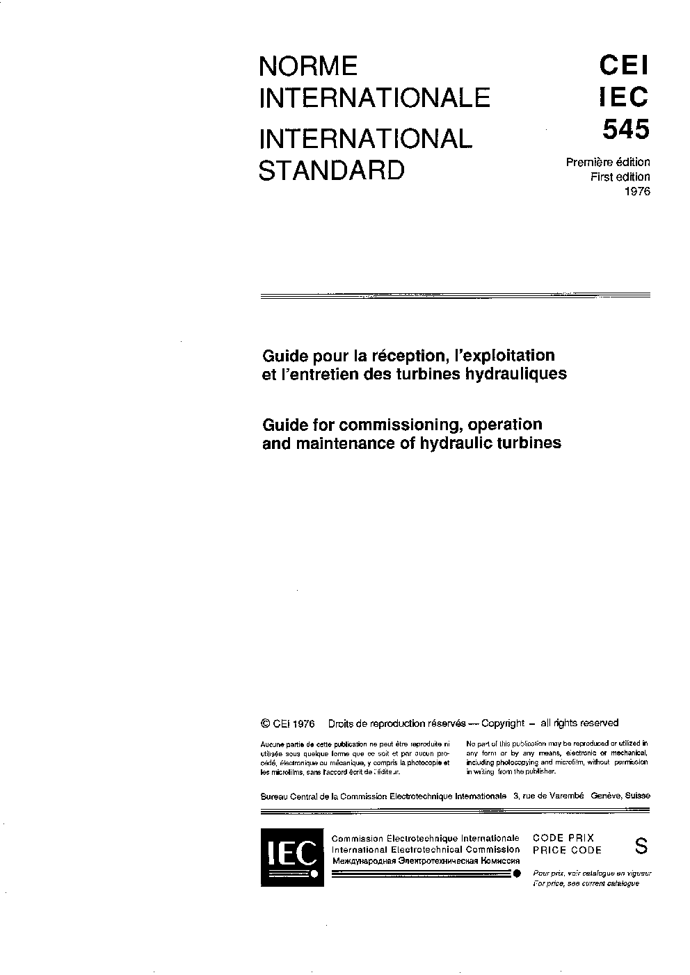 IEC 60545:1976 Guide for commissioning, operation and maintenance of hydraulic turbines