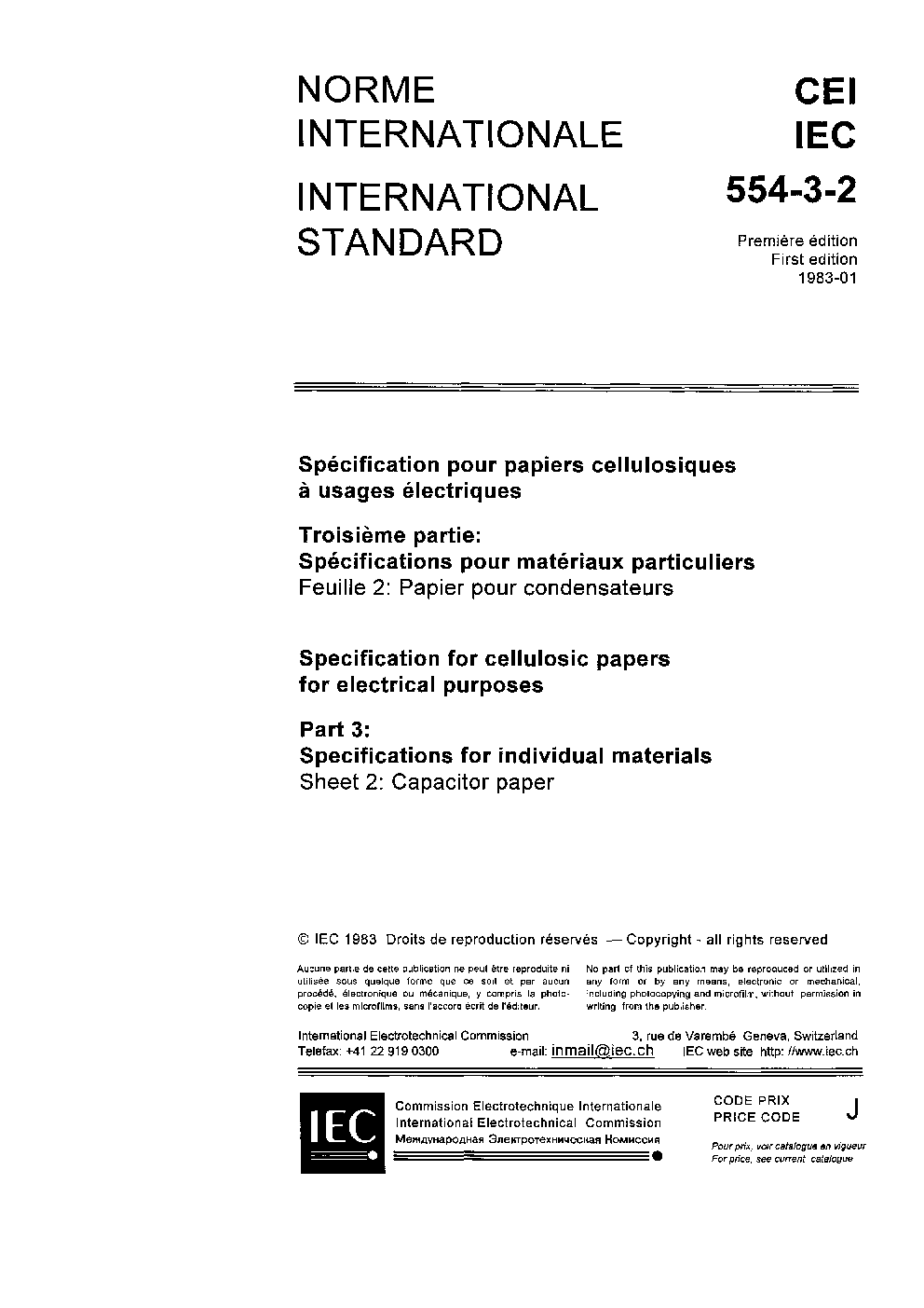 IEC 60554-3-2:1983 Specification for cellulosic papers for electrical purposes. Part 3: Specifications for individual materials. Sheet 2: Capacitor paper