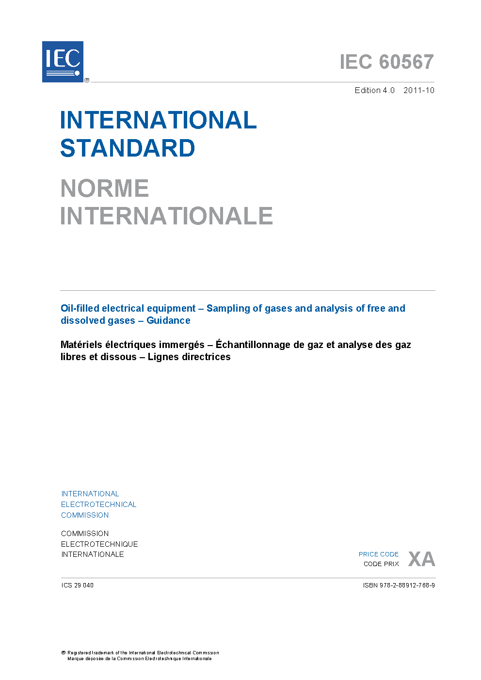 IEC 60567:2011 Oil-filled electrical equipment - Sampling of gases and analysis of free and dissolved gases - Guidance