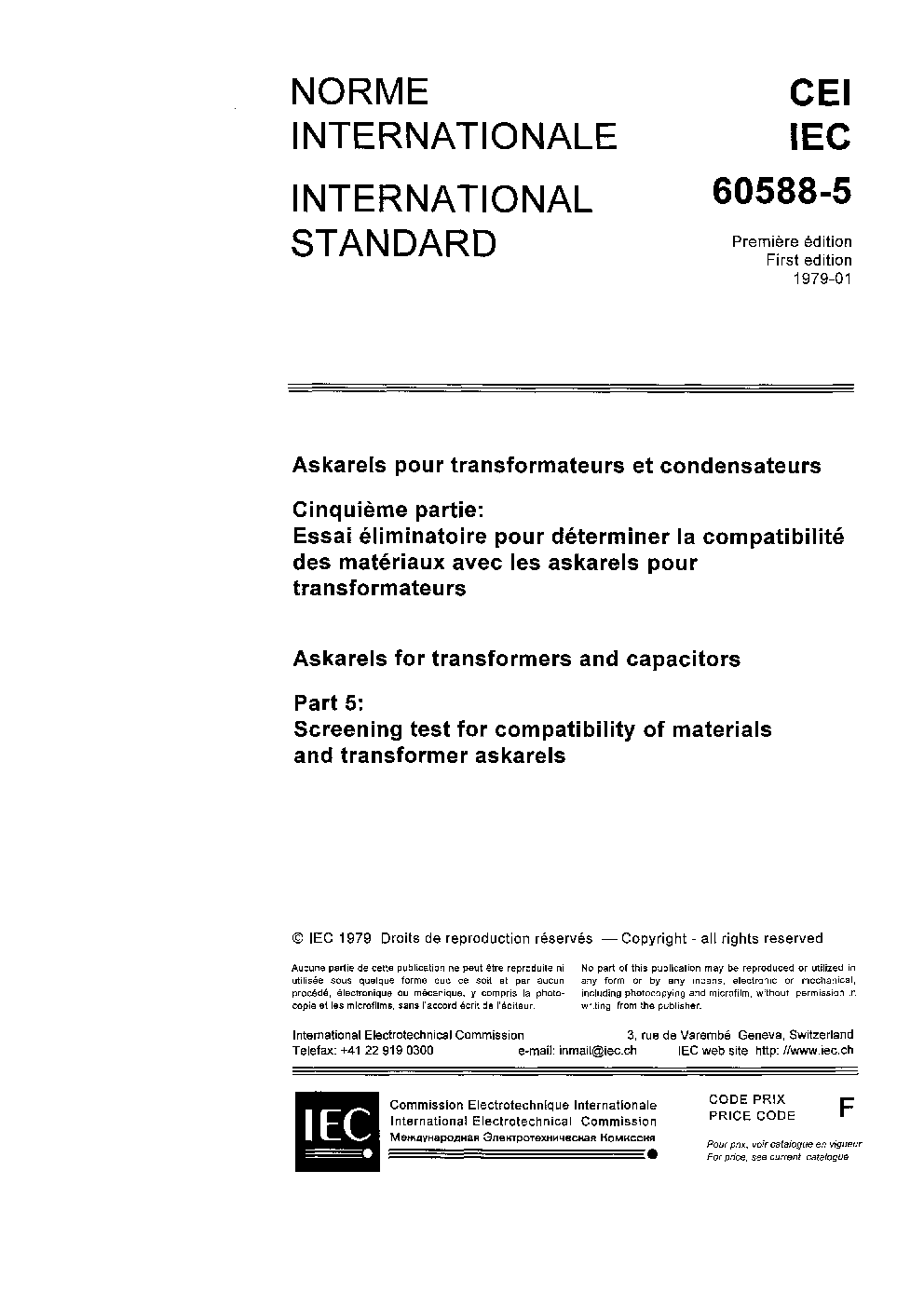 IEC 60588-5:1979 Askarels for transformers and capacitors. Part 5: Screening test for compatibility of materials and transformer askarels