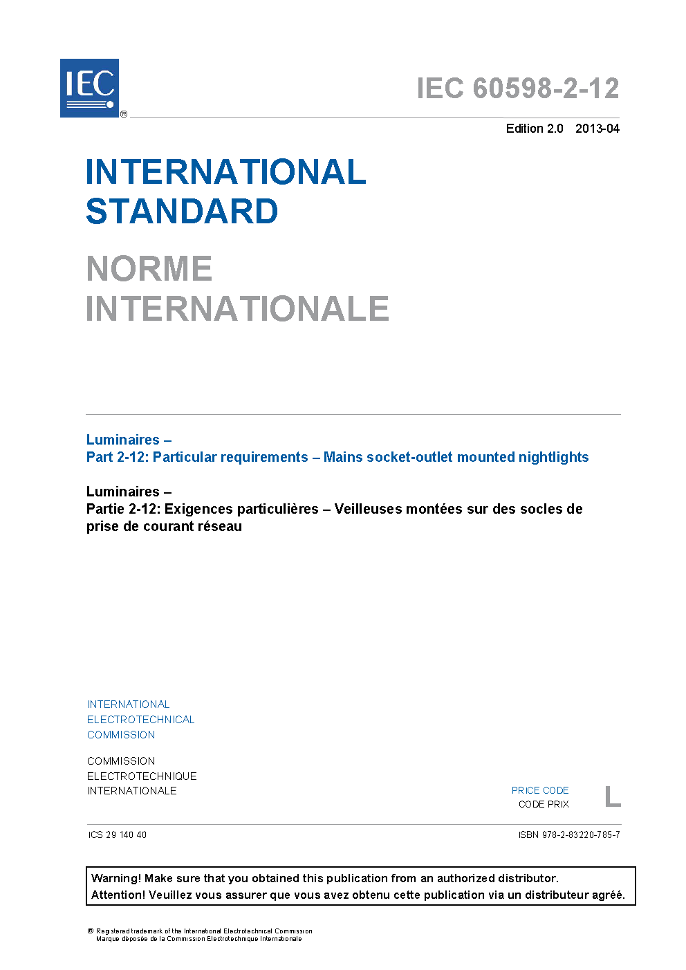 IEC 60598-2-12:2013 Luminaires - Part 2-12: Particular requirements - Mains socket-outlet mounted nightlights