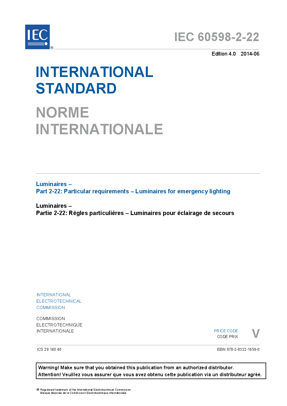 IEC 60598-2-22:2014 Luminaires - Part 2-22: Particular requirements - Luminaires for emergency lighting