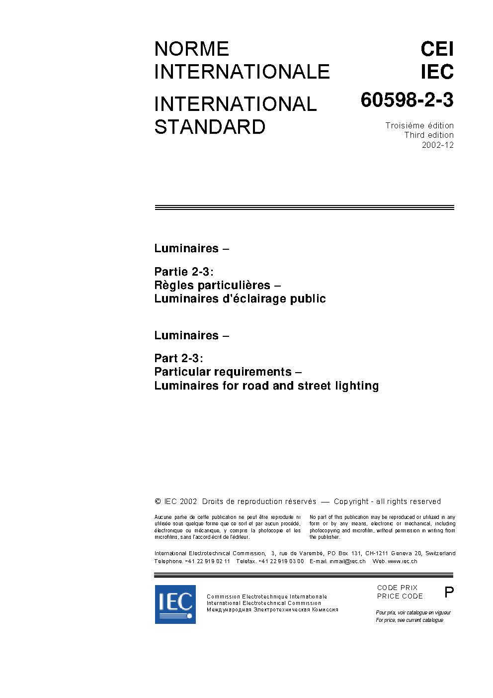 IEC 60598-2-3:2002/AMD1:2011 Amendment 1 - Luminaires - Part 2-3: Particular requirements - Luminaires for road and street lighting