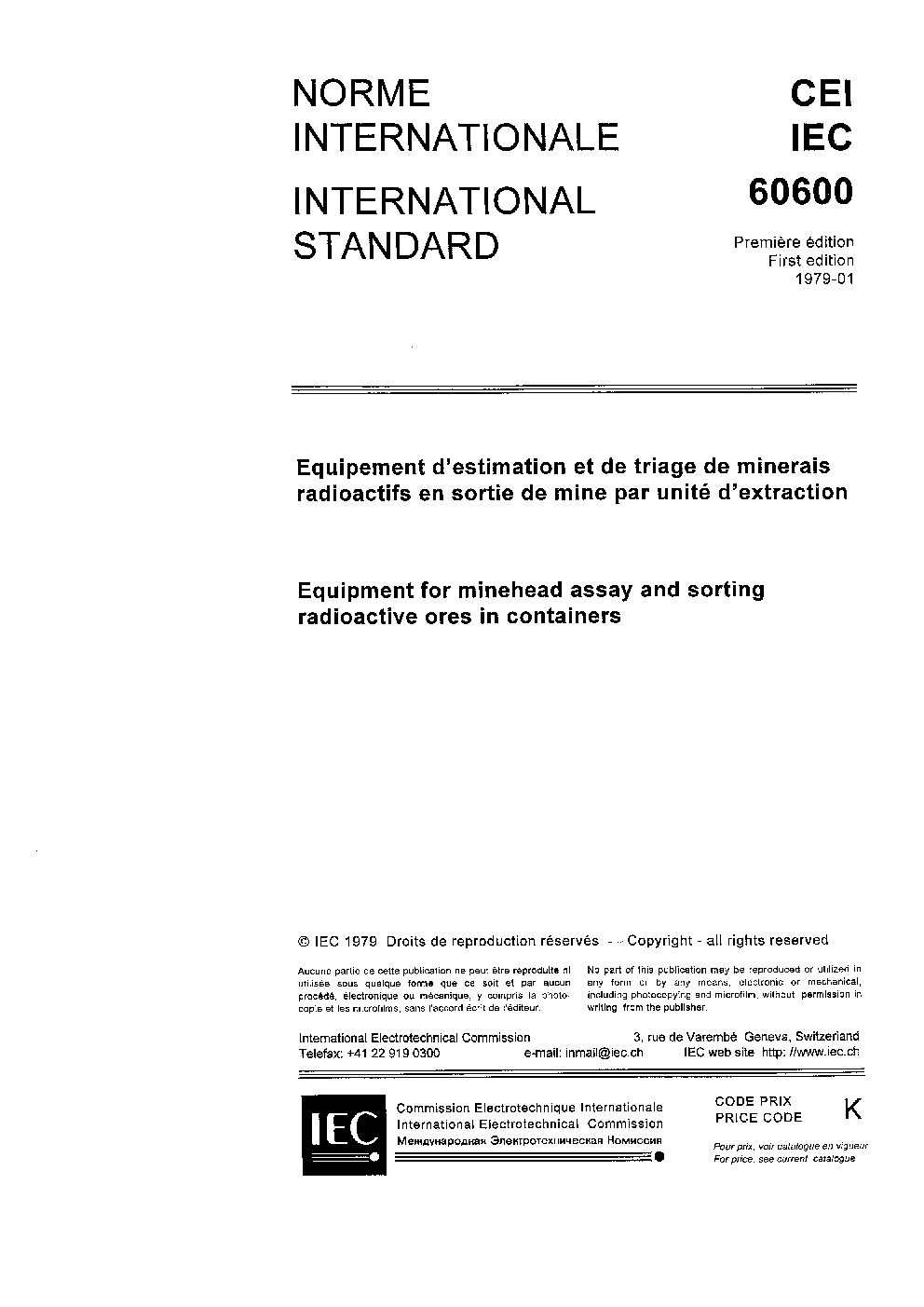 IEC 60600:1979 Equipment for minehead assay and sorting radioactive ores in containers