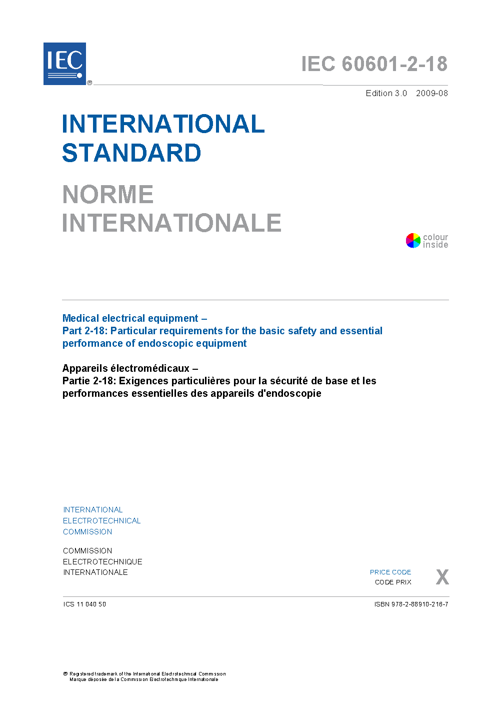 IEC 60601-2-18:2009 Medical electrical equipment - Part 2-18: Particular requirements for the basic safety and essential performance of endoscopic equipment