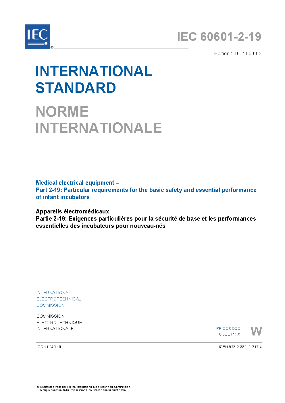 IEC 60601-2-19:2020 Medical electrical equipment - Part 2-19: Particular requirements for the basic safety and essential performance of infant incubators