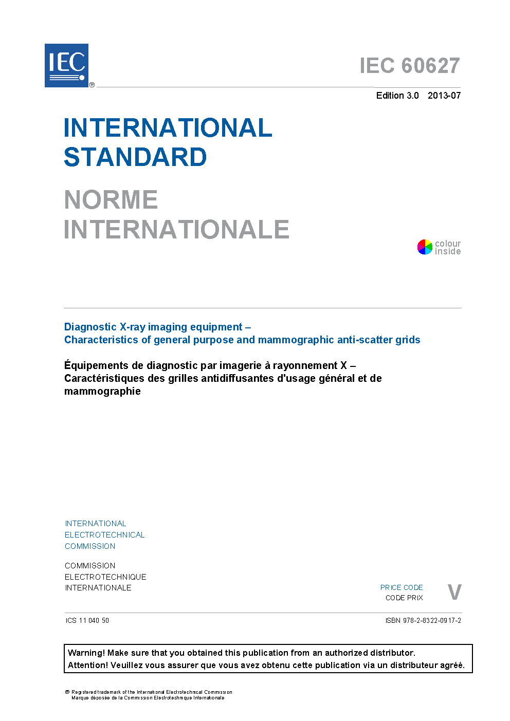 IEC 60627:2013 Diagnostic X-ray imaging equipment - Characteristics of general purpose and mammographic anti-scatter grids